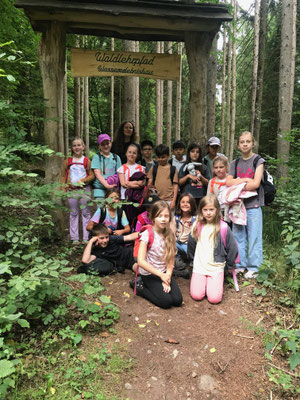 - Klasse 2a auf dem Waldlehrpfad in Gemünden
